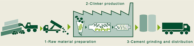 Cement is a binder that, when mixed with aggregate (sand and gravel) and water, forms concrete; one of the world’s most versatile and durable construction material. Step 1 - Raw material preparation Limestone and silica sand are blended with additional minerals into a finely ground powder. Step 2 - Clinker production The finely ground powder is heated in a kiln producing a molten product called clinker. Step 3 - Cement grinding and distribution The clinker is mixed with additional materials, depending on the type of cement being made, then ground to a fine powder. |